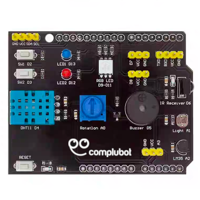 Placa de expansión para Arduino / Compluino con sensores integrados y conectores de ampliación tipo Header